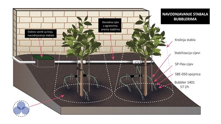 Samokompenzirajući emiteri s konstantnim protokom pri rasponu pritiska od 1,4 do 6,2 bara. Priključak 1/2"Ž. Isporučuje se s filter mrežicom promjera 1/2".