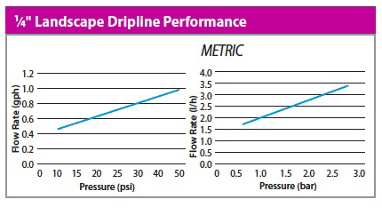 Karakteristike Radni pritisak: 0.7 do 2.7 bara Protok pri 2.0 bar: 3.0 l/h Potrebna filtracija: 200 mesha (75 microna) Maksimalna lateralna duljina: Za razmak kapaljki 15cm - 5,5 m Za razmak kapaljki 30cm - 10 m