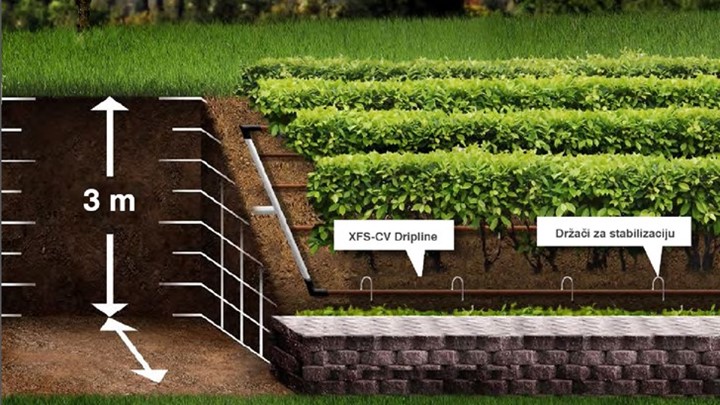 Rain Bird® XFS-CV cijev kap po kap za podzemnu ugradnju s bespovratnim ventilom kombinira zaštitu od ulaska korijena u kapaljke i nepovratni ventil za sprječavanje gravitacijskog pražnjenja do visine 3m.