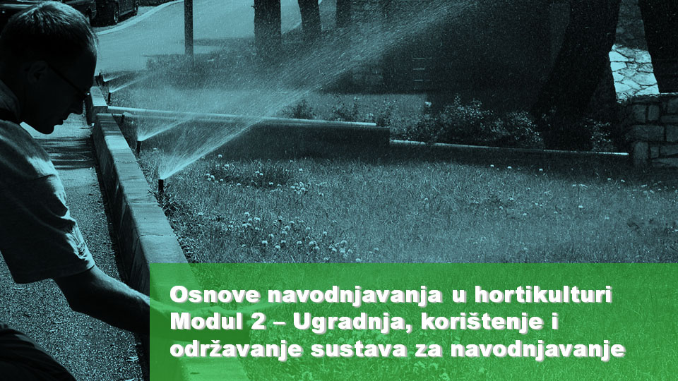 Dvodnevni tečaj - prvi dan Osnove odnosa biljaka, vode i tla (bitni primijenjeni agronomski, hidrološki i pedološki koncepti) Osnovni pojmovi iz hidraulike i strujanja tekućina u cjevovodima Prikupljanje potrebnih podataka i izrada projektne podloge Definiranje potrebe vode sukladno krajobraznom rješenju i ostalim uvjetima Odabir i raspored uređaja za navodnjavanje Grupiranje uređaja po zonama, regulacija pritiska, filtracija Hidrauličko dimenzioniranje cjevovoda i armatura