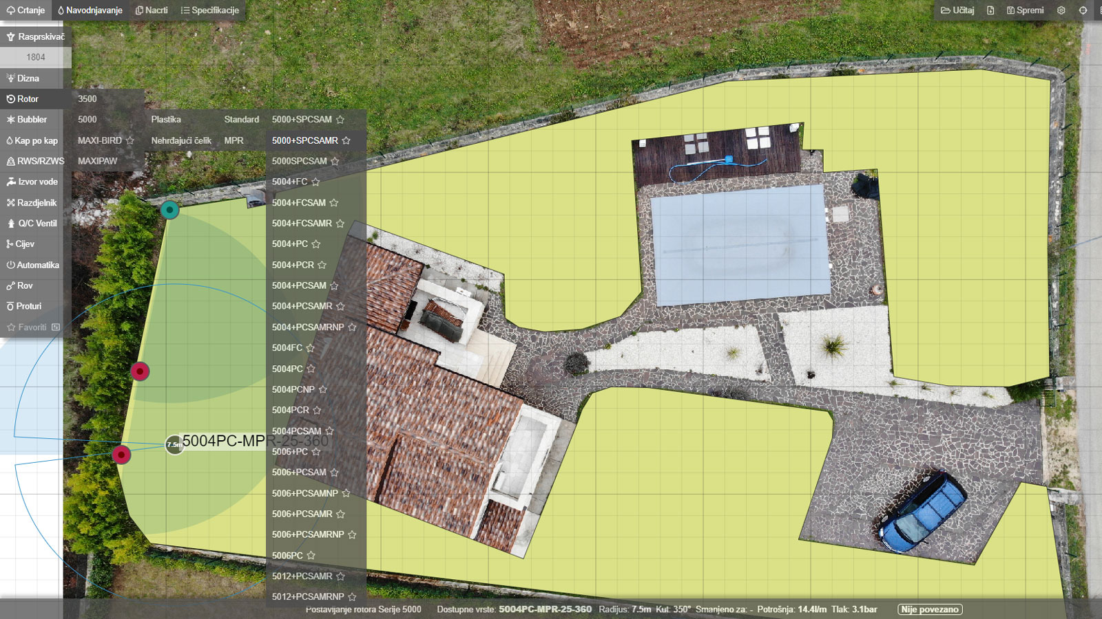 Što Vam pruža IRRISketch? Brzu i jednostavnu izradu rasporeda uređaja za navodnjavanje, crtanje cjevovoda i komponenti automatike i ožičenja sustava. Grafički prikaz ravnomjernosti prekrivanja i intenziteta navodnjavanja na svim površinama. Grafički prikaz hidrauličkih uvjeta u cjevovodu s protocima i radnim tlakom u svakom od segmenata cjevovoda. Automatsko generiranje preporučenih režima rada za sve linije navodnjavanja u sustavu. Automatiziranu izradu specifikacije materijala koja se može povezati s aktualnim cjenicima opreme. Automatiziranu izradu kalkulacije cijene radova prema vlastitim opisima radova i cijenama. Izradu različitih grafičkih prikaza za portebe rada na terenu ili za predaju naručitelju. Jednostavnu izradu izmjena i dopuna za predaju izvedenog stanja instalacije korisniku.