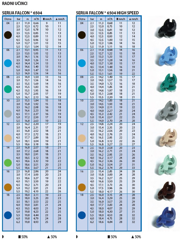 Rain Curtain™ dizne: 04 (crna), 06 (svijetlo plava), 08 (tamno zelena), 10 (smeđa), 12 (bež),