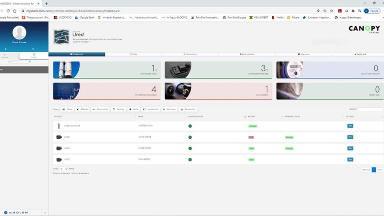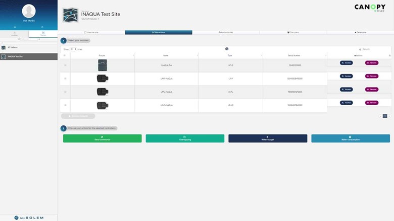Putem Canopy sučelja moguće je provesti naredbe za pojedinačni modul, odabranu grupu modula ili za cijelu lokaciju. Ovo je posebno korisno za prilagođavanje vodnog budžeta (povećanje i smanjenje ciklusa u postocima ovisno o vremenskim uvjetima), gašenje navodnjavanja na određeni vremenski period i sl..