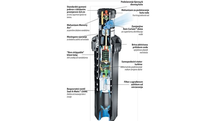 Pop-up rotor 8005 ostvaruje domet of 20 m već pri protoku manjem od 4 m3/h po uređaju, uz radni pritisak na dizni uređaja manji od 4,0 bara.